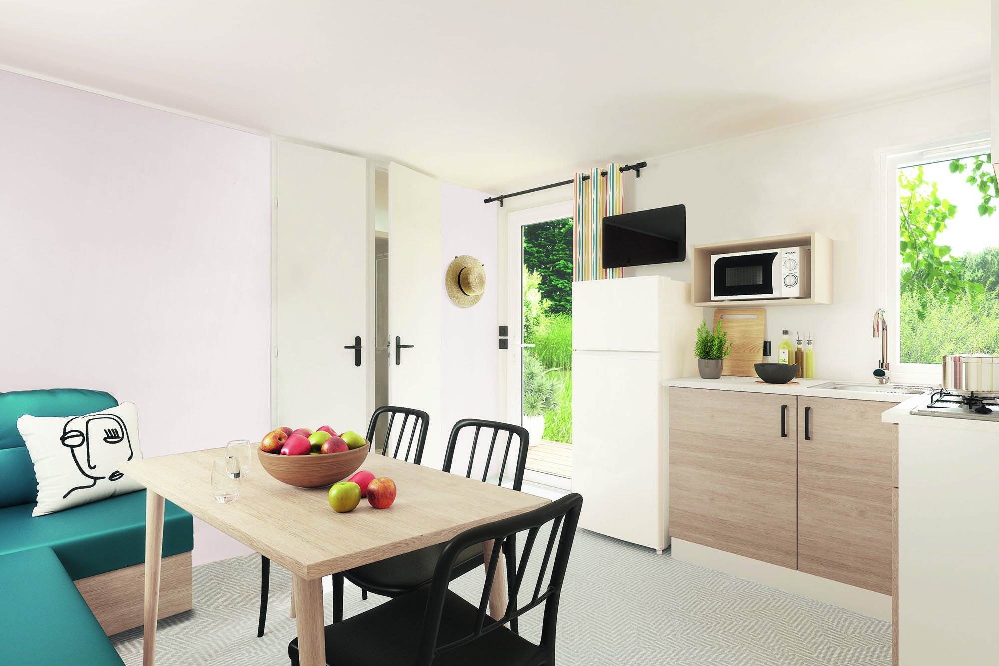 Ein Mobilheim ist ideal, um zu bleiben, wenn Sie während Ihres Urlaubs etwas mehr Luxus haben möchten. Genießen Sie das wunderbare Urlaubsgefühl, bei dem Sie nichts aufbauen oder mitnehmen müssen. Ihr Mobilheim ist immer mit einer möblierten Sitzecke mit TV und Herd, Küche mit Kühlschrank, Mikrowelle, Kaffeemaschine, 4-Flammen-Herd und Küchenausstattung, Bad mit WC, Waschbecken und Dusche und einem kompletten Gartenset inklusive Sonnenschirm "Oostappen Gruppe" ausgestattet.